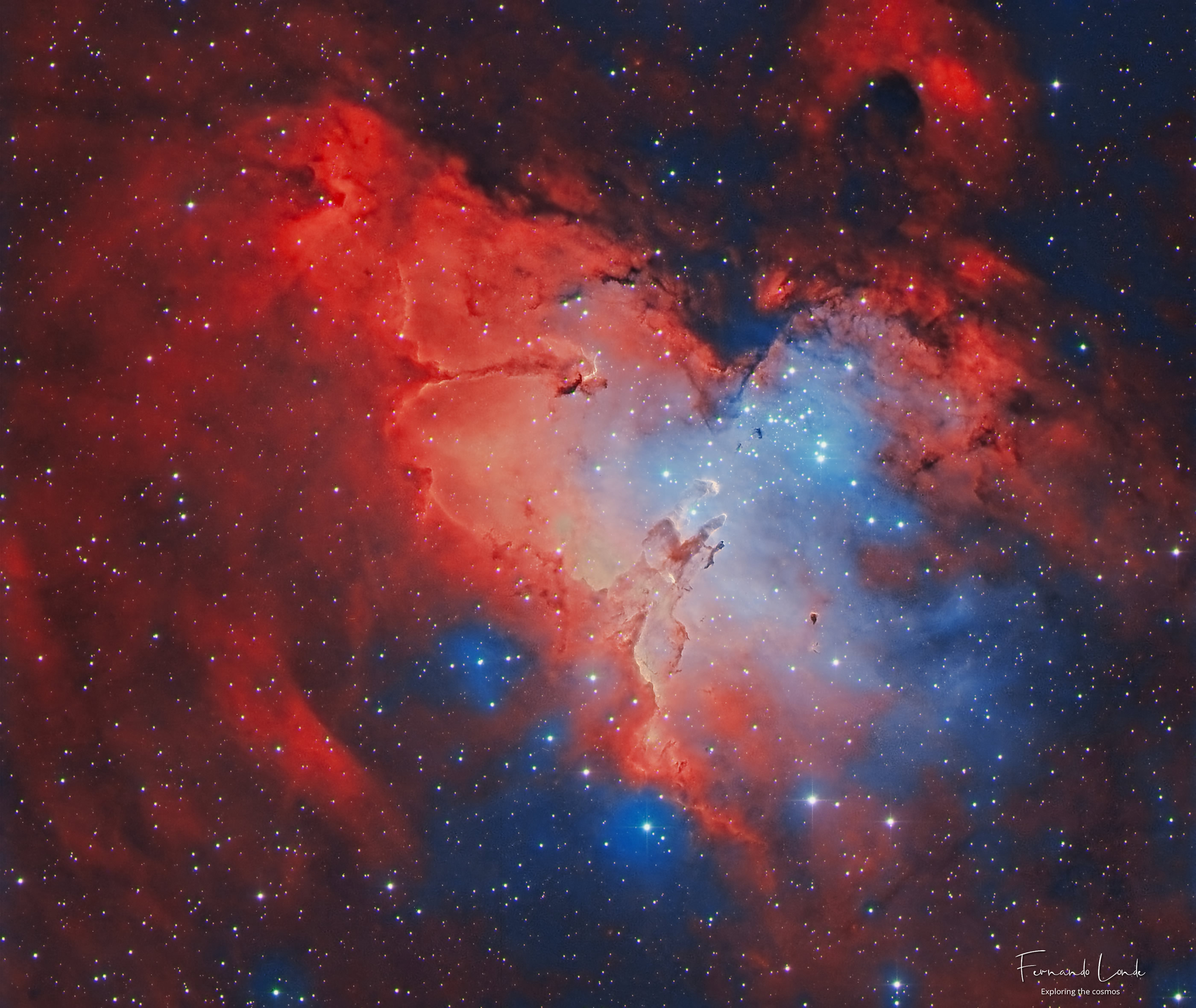 The Eagle Nebula is a young open cluster of stars in the constellation Serpens.